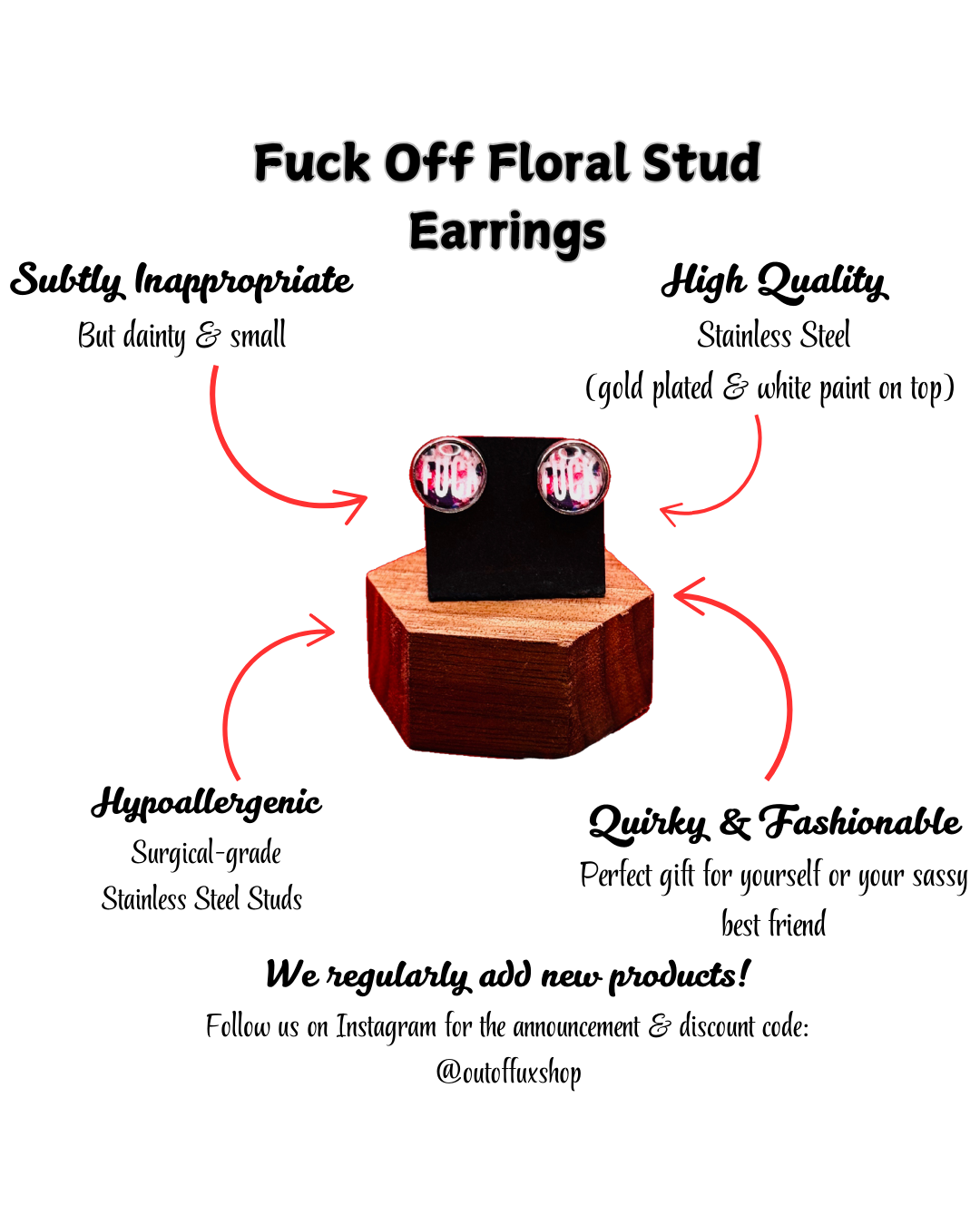Fuck Floral Stud Earring for Her - Dainty and Fun Cuss Word Swear Word Gifts