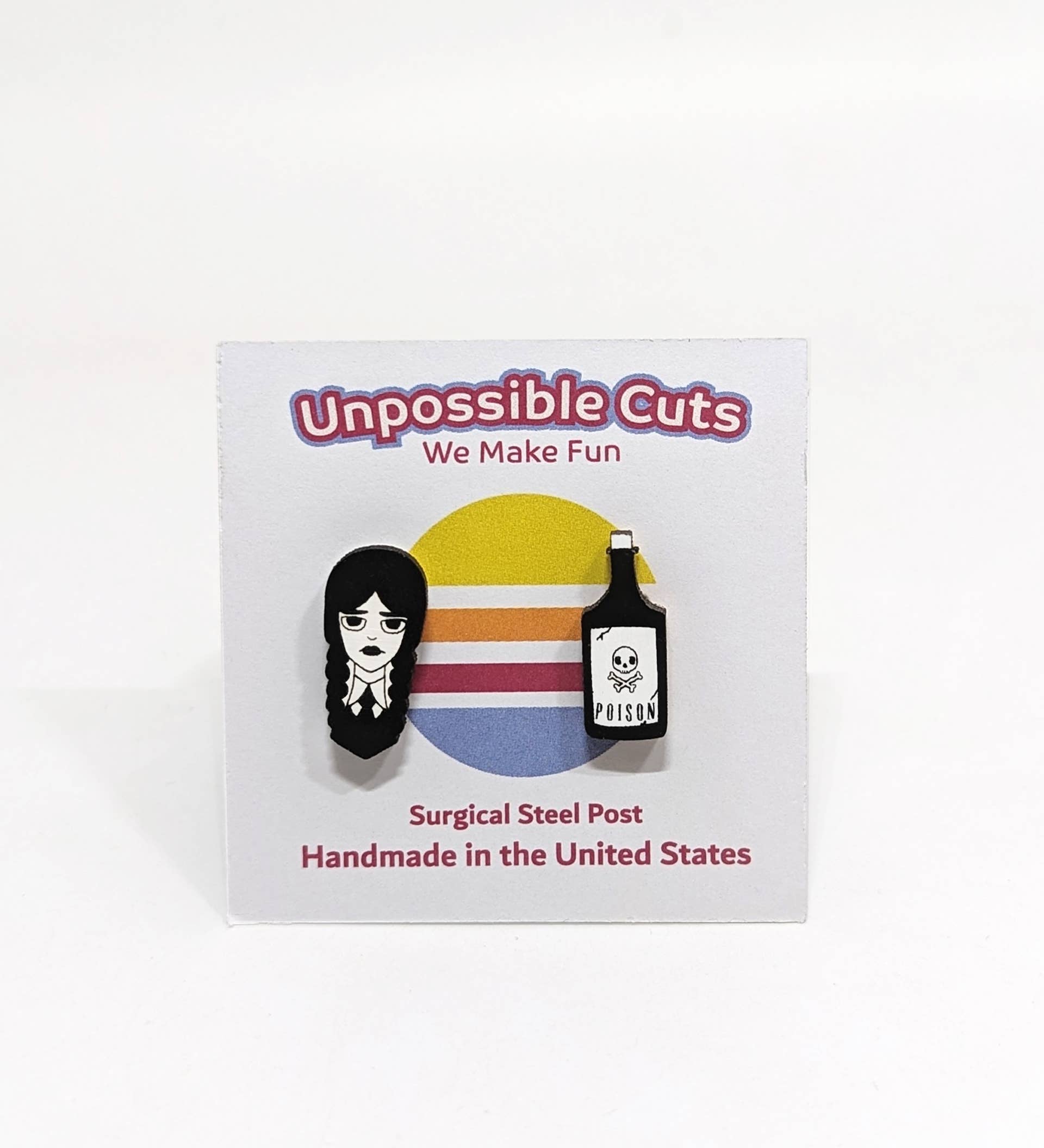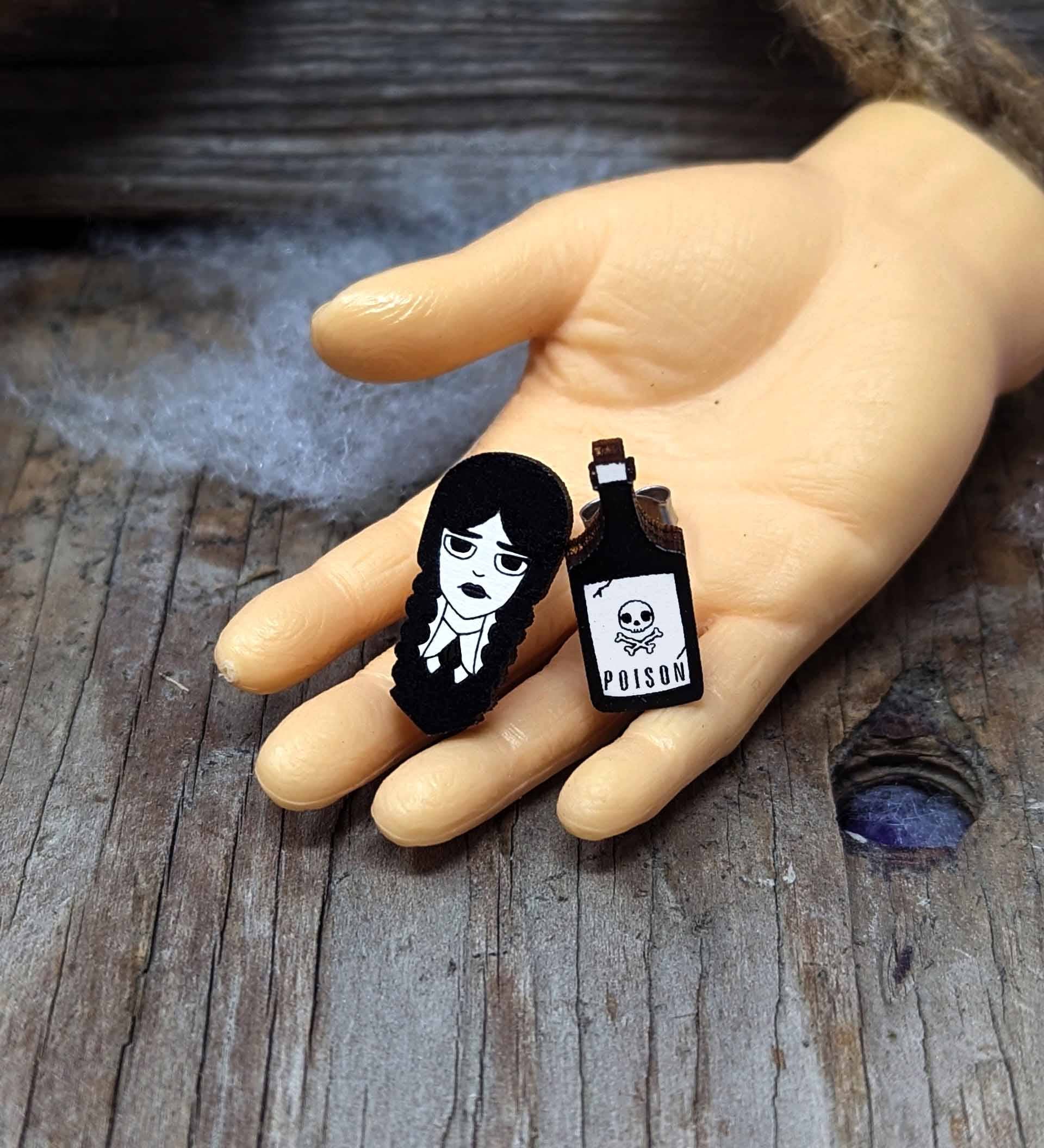 Wednesday Addams Earring Gothic Style Dark Aesthetic Halloween Jewelry Black Skull Poison Bottle Gothic Design Wooden Earring Spooky Gift