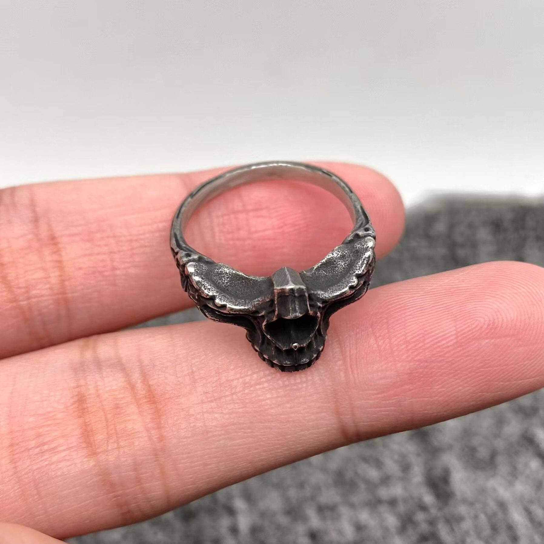 Mutilated Skull Biker Ring - Dark Stainless Steel