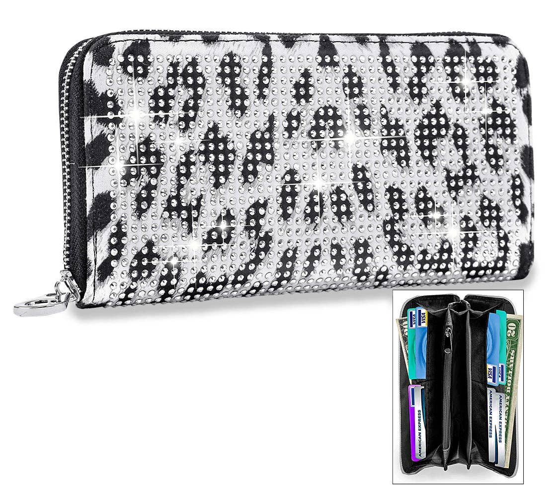Sparkling Animal Print Accordion Wallet-White