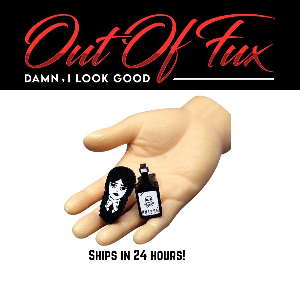 gothic rings, Wednesday Addams jewelry, poison bottle ring, alternative fashion accessories, goth jewelry, spooky jewelry, horror fashion, dark aesthetic accessories