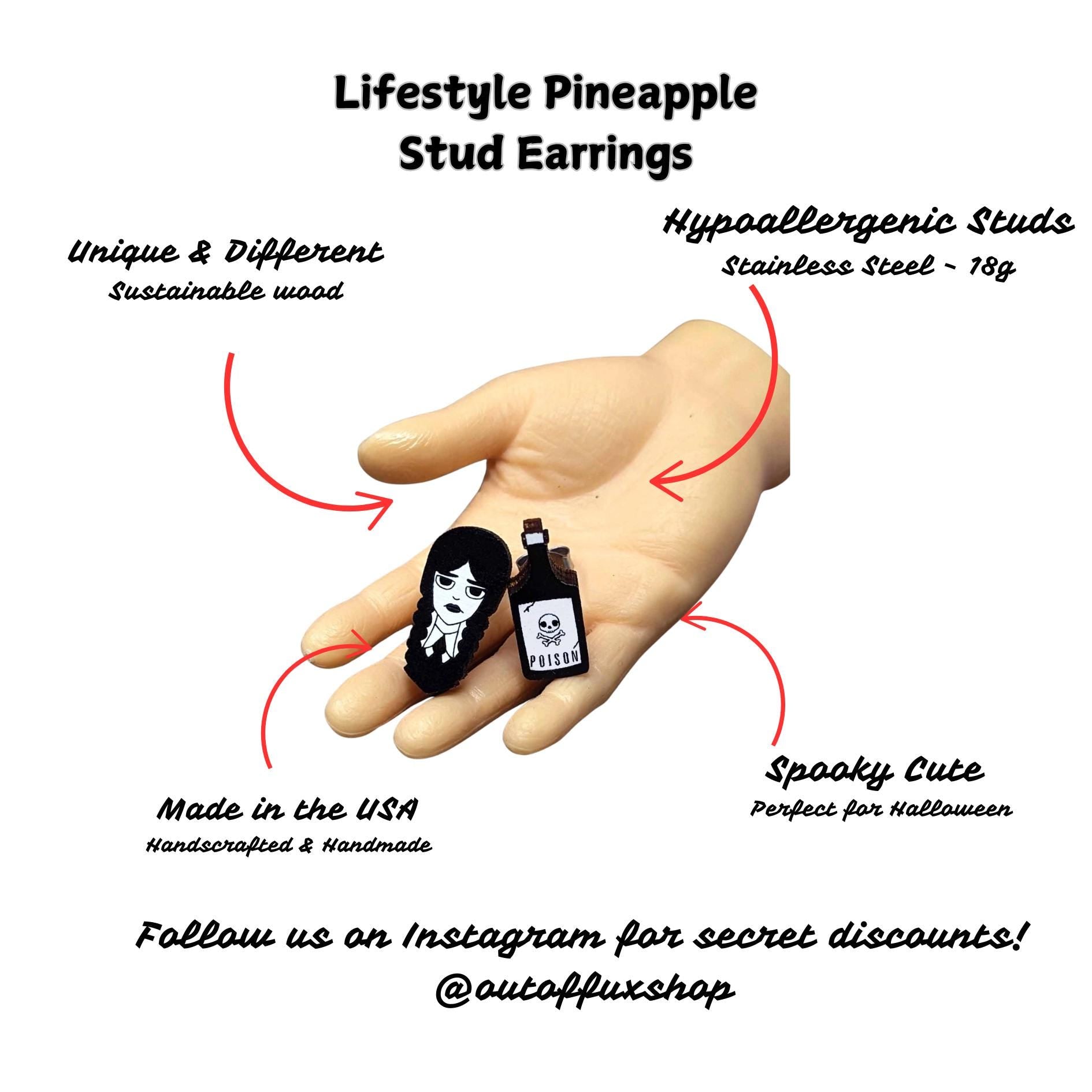Wednesday Addams Earring Gothic Style Dark Aesthetic Halloween Jewelry Black Skull Poison Bottle Gothic Design Wooden Earring Spooky Gift